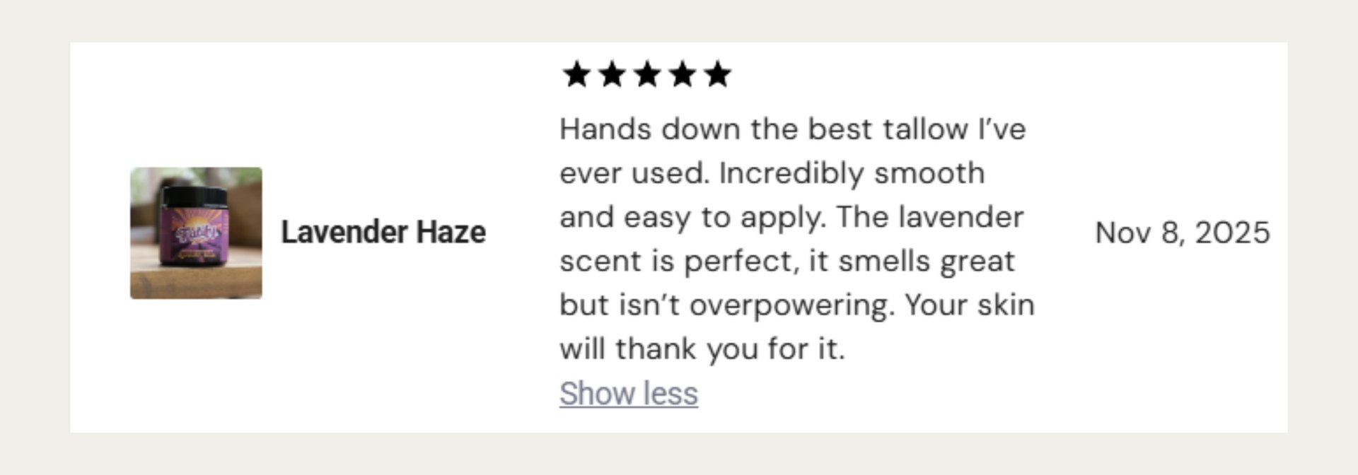 Disclaimer: Fatify products are made with natural ingredients including tallow, essential oils, and macadamia oil (tree nut). Not recommended for use during pregnancy, breastfeeding, or on children. For external use only. Always patch test before use.